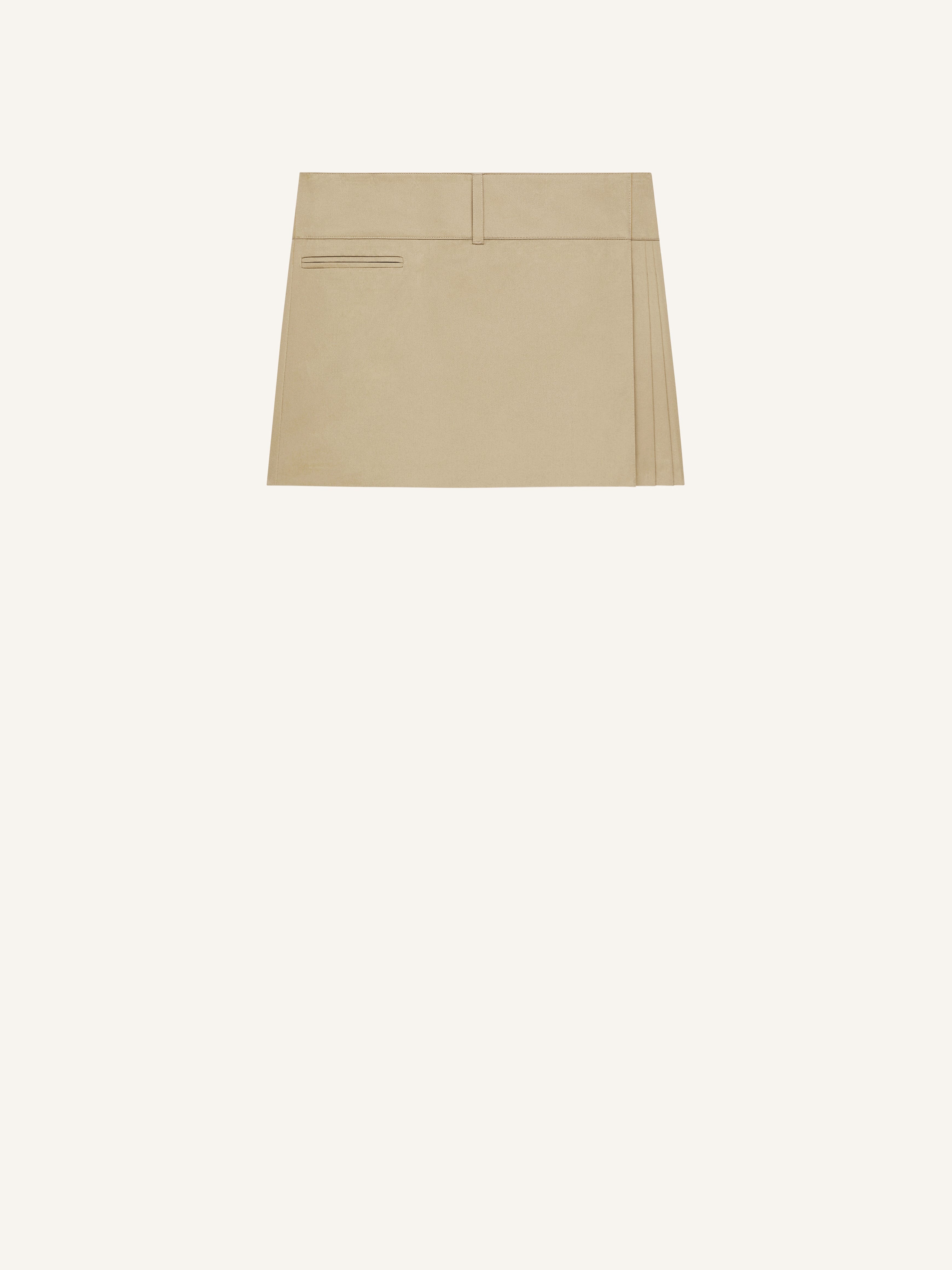 Pleated panel polycotton mini skirt. Welt side pocket. The model is 1.78m tall and wears a size 36. DETAILS Composition: 65% polyester, 35% cotton Country of Manufacture: RO SKU: 125CJU220PL01781005 Color: Beige