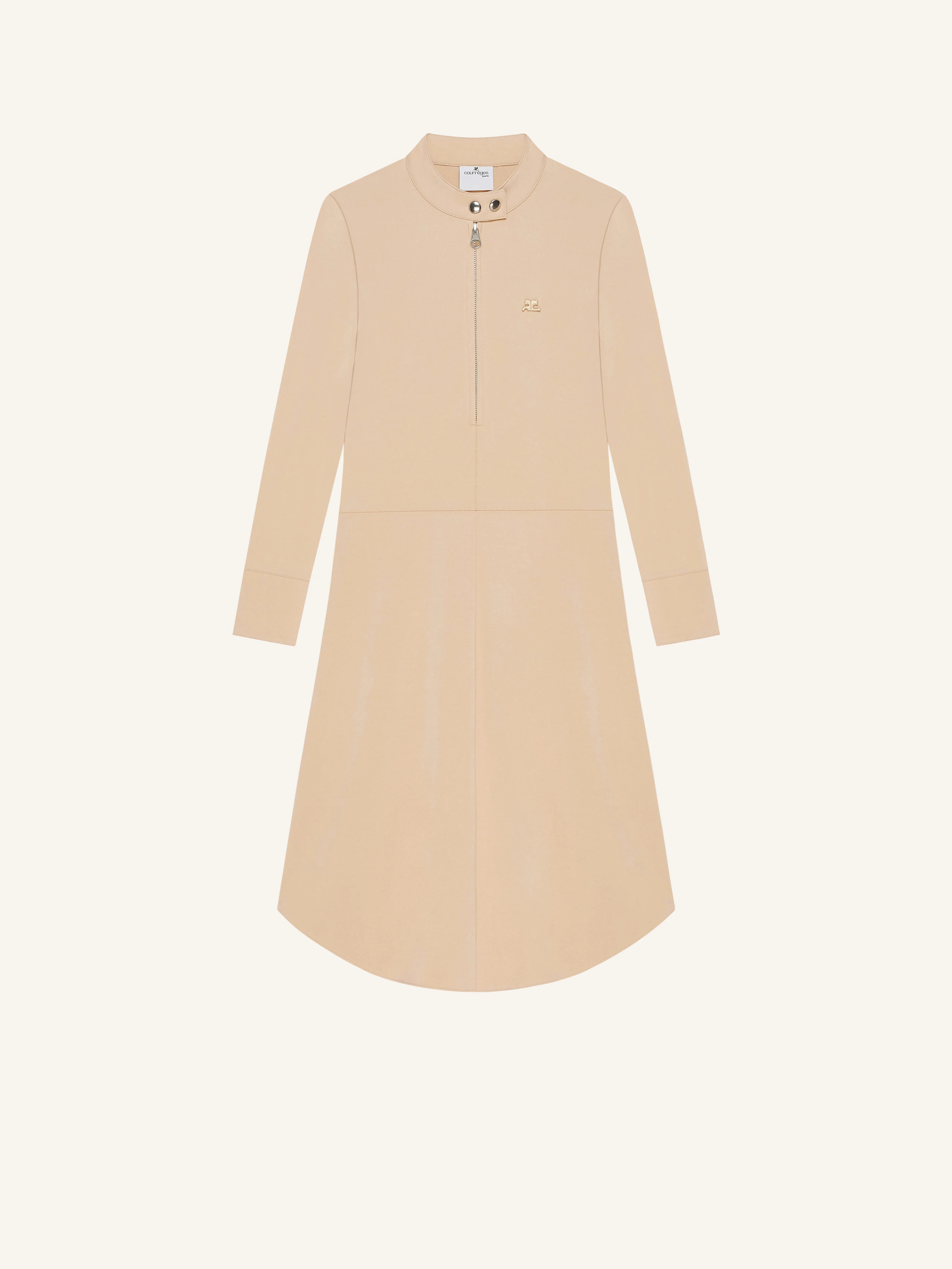 Biker style long-sleeved dress with adjustable high collar and AC logo on chest. Zipped fastening centered at the front. The model is 1.77m tall and wears a size 36. DETAILS Composition: 94% viscose, 6% elastane Country of Manufacture: FR SKU: 325JRO685JS02201019 Color: Dune