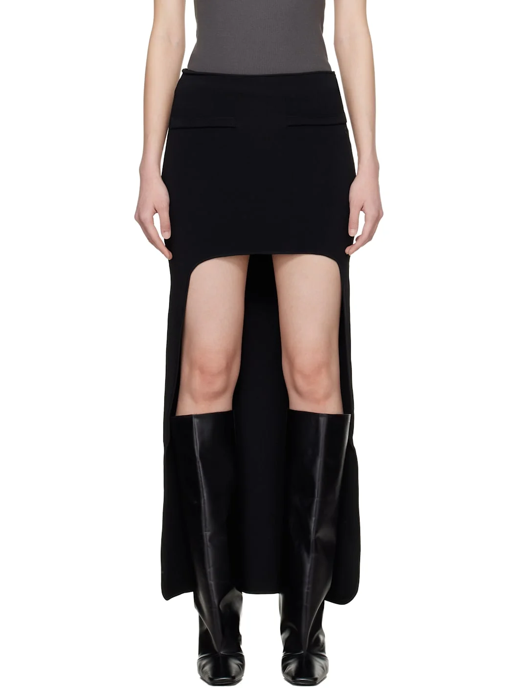 Black Circle Edged Long Knit Midi Skirt