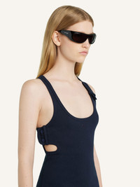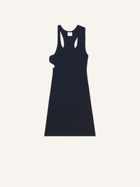 90's rib short dress with button placket on the shoulder and on the side. The model is 1.78m tall and wears a size S. DETAILS Composition: 98% cotton, 2% elastane Country of Manufacture: PT SKU: 125JRO550JS01947075 Color: Navy