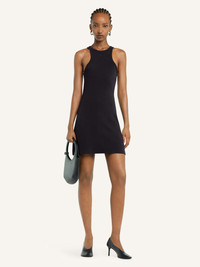 Sleeveless A-line jersey short dress with AC logo below neckline. The model is 1.75m tall and wears a size S. DETAILS Composition: 100% cotton Country of Manufacture: PT SKU: 125JRO577JS02039999 Color: Black