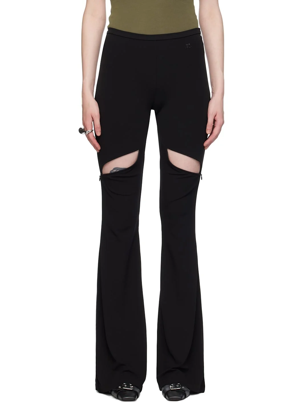 Bootcut stretch viscose crepe trousers. · Embroidered logo patch at front waistband · Concealed zip vents at front · Concealed zip closure at side seam Supplier color: Black 95% viscose, 5% elastane. Made in Italy 241783F087012