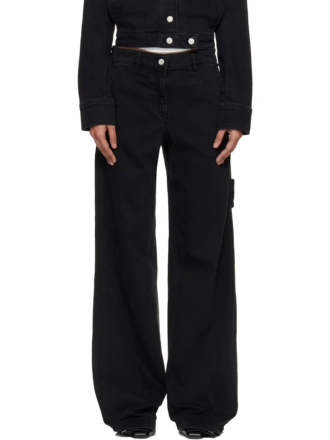 Non-stretch denim jeans. · Fading throughout · Loose-fit · Belt loops · Four-pocket styling · Zip fly · Logo embroidered at front · Logo-embroidered hammer loop at outseam · Logo patch at back waistband Supplier color: Denim black 100% cotton. Made in Tunisia 261783F069001