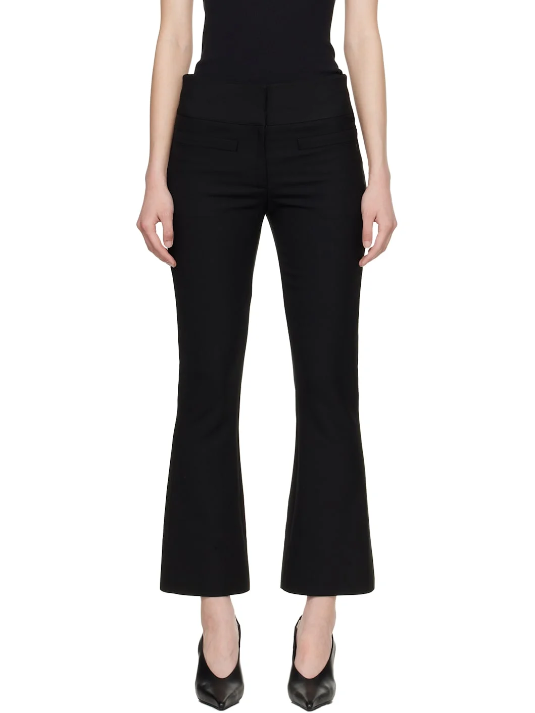 Plain-woven trousers. · Three-pocket styling · Zip fly · Logo embroidered at front · Cropped leg Supplier color: Black Body: 89% polyester, 11% polyurethane. Trim: 100% viscose. Made in Romania 261783F087001