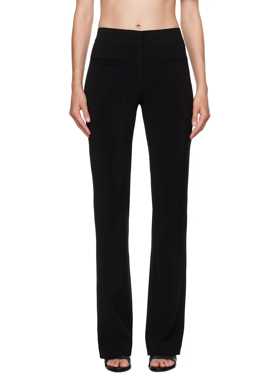 Stretch crepe trousers. · Bootcut · Three-pocket styling · Zip fly Supplier color: Black Body: 89% polyester, 11% polyurethane. Trim: 100% viscose. Made in Romania 252783F087007