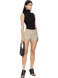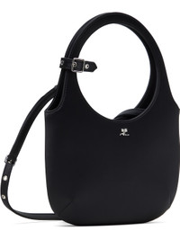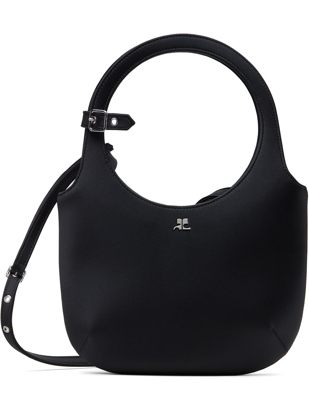 Stretch satin shoulder bag in black. · Pin-buckle tab at integrated shoulder straps · Adjustable and detachable crossbody strap · Logo hardware at face · Magnetic press-stud closure · Patch pocket at interior · Satin lining · Silver-tone hardware · H7" x W10" x D2" · Total height: H13.5" Supplier color: Black 97% polyester, 3% elastane. Made in Italy 251783F048017