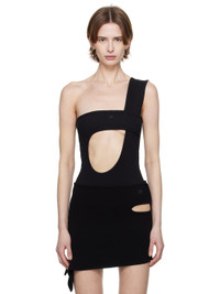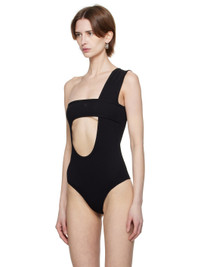 Stretch cotton ribbed jersey bodysuit. · Single-shoulder construction · Cutout and embroidered logo patch at front · Press-stud fastening at bottom Supplier color: Black 98% cotton, 2% elastane. Made in Portugal 251783F358003