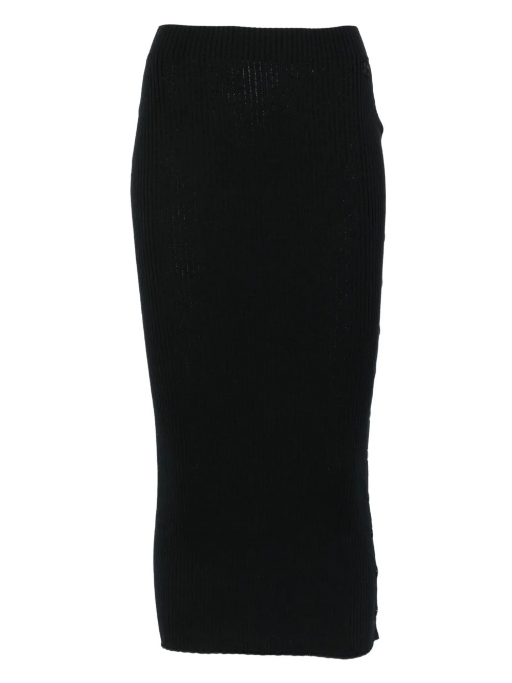 ribbed midi skirt Highlights - Black - Ribbed texture - Midi length - Straight hem - Cotton blend Imported Composition Cotton 80%, Merino 20% SIZE & FIT Model measurements Height 5 ft 10 in(1.78 m) Bust/Chest 31.49 in(80 cm) Hips 37 in(94 cm) Waist 23.62 in(60 cm) Washing instructions Read Manufacturer Guidelines