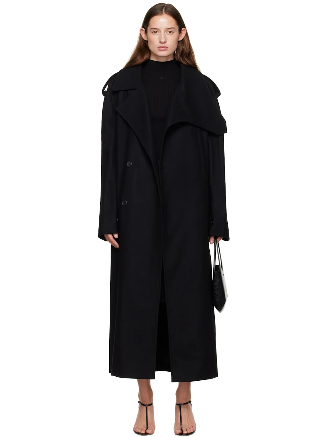 Black Oblique Wool Trench Coat