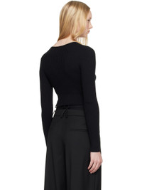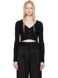 Rib-knit cotton- and merino wool-blend cardigan. · Y-neck · Button closure · Embroidered logo patch at front hem · Cropped hem · Lettuce edge at hem and cuffs Supplier color: Black 80% cotton, 20% merino wool. Made in Italy 251783F095003