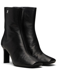 Black Square Toe Leather Ankle Boots