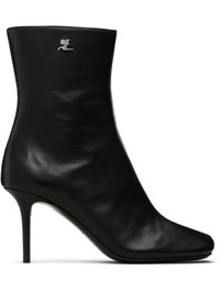 Ankle-high grained lambskin boots. · Square toe · Zip closure at inner side · Logo hardware at outer side · Stiletto heel with rubber injection · Leather sole · Heel: H3" Supplier color: Black Leather. Made in Italy 252783F113002