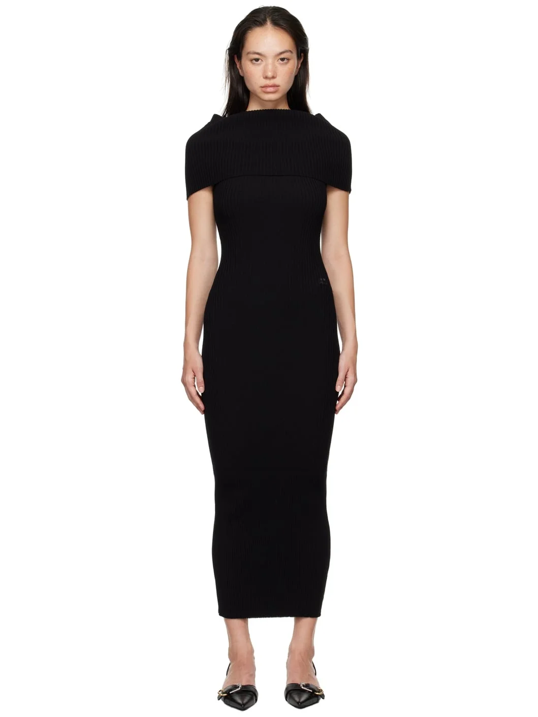 Rib knit viscose- and polyester-blend dress. · Layered and twisted single-shoulder construction · Foldover neck · Logo patch at front Supplier color: Black 70% viscose, 30% polyester. Made in Bulgaria 242783F055000