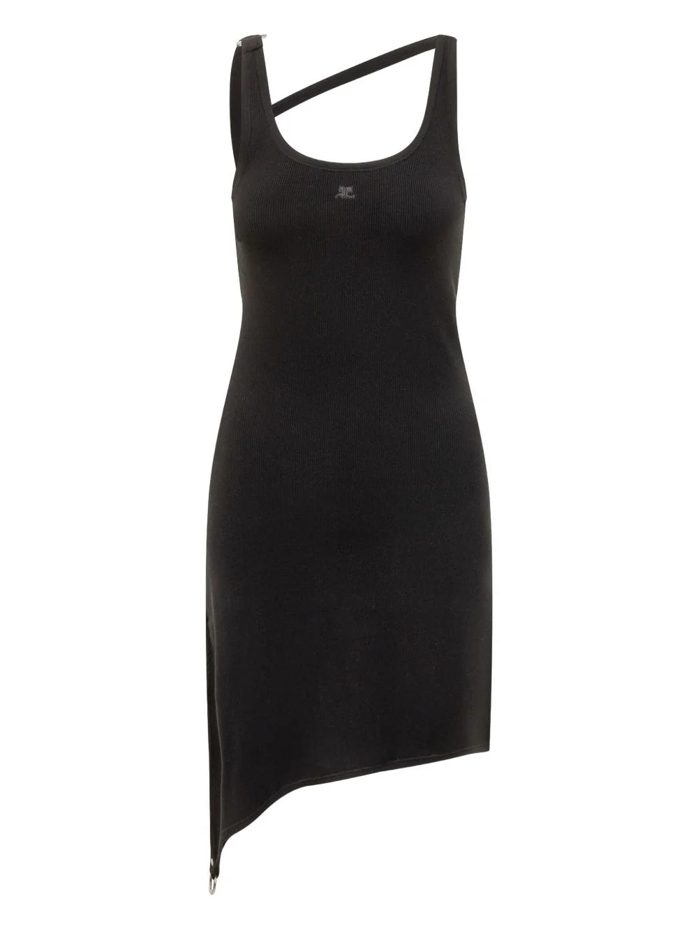 asymmetrical-strap mini dress Highlights - Black - Asymmetrical hem - Strap buckle detail - Open back Imported Composition Viscose 70%, Polyester 30% Washing instructions Read Manufacturer Guidelines