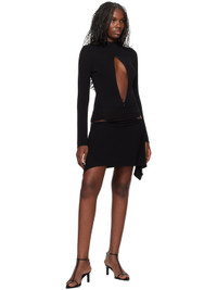 Stretch viscose crepe jersey miniskirt. · Elasticized waistband · Zip cutout at side seams · Handkerchief hem Supplier color: Black 95% viscose, 5% elastane. Made in France 242783F090008