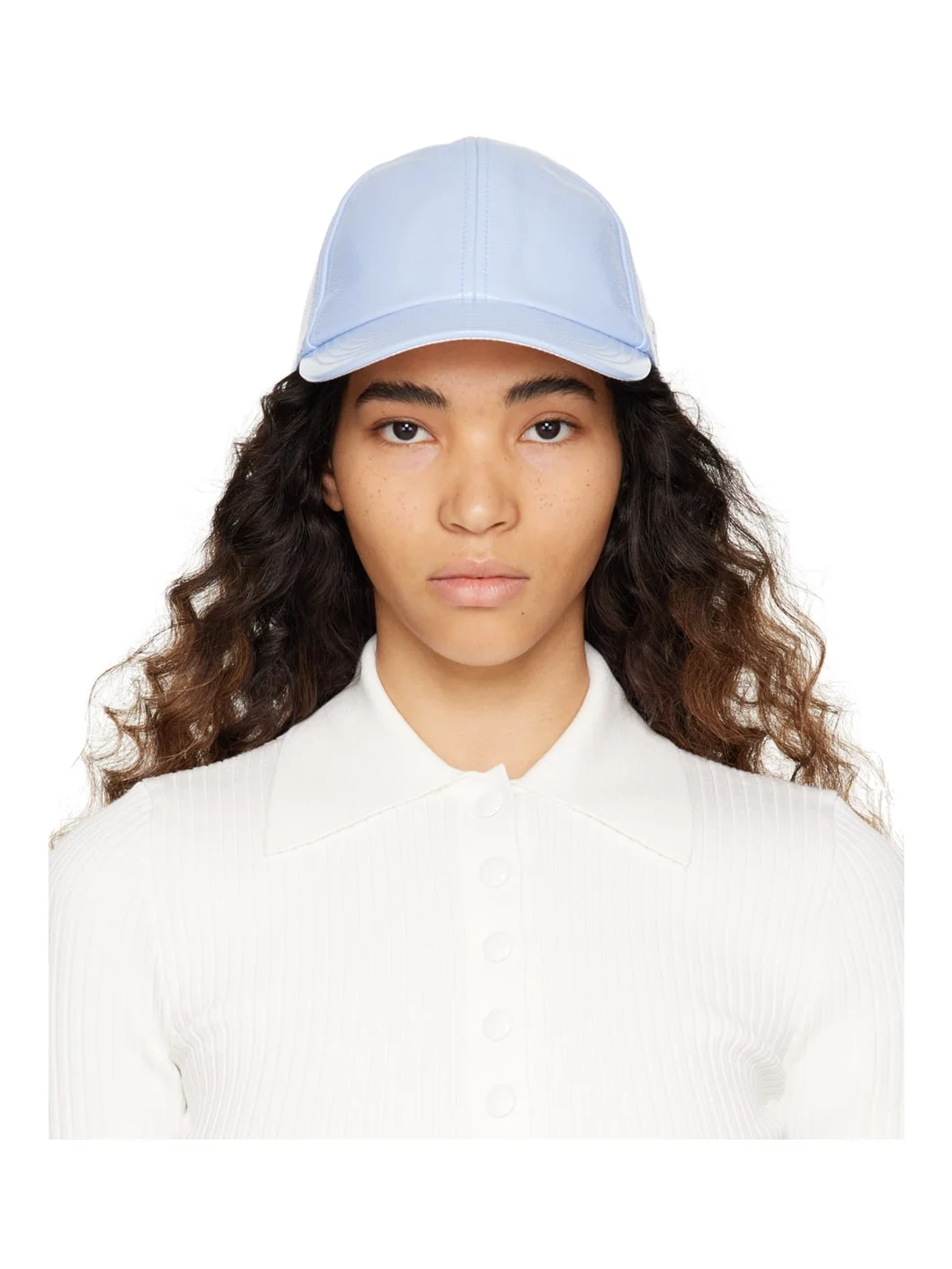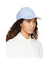 Polyurethane-coated stretch cotton cap in blue. · Felted logo patch in white at side · Adjustable snap-back fastening at back face Supplier color: Pastel blue 88% cotton, 10% polyurethane, 2% elastane. Made in Bulgaria 231783F016001