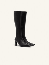 Boots in nappa leather-look synthetic material with stick heel and open square toe. Heel: 7cm. DETAILS Composition: 100% Polyester Made in: Italy Color: Black Code Article : 423SBT012PL0128
