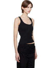 Stretch cotton ribbed jersey tank top. · Scoop neck · Embroidered logo patch at chest · Button fastening at shoulder strap · Racer back Supplier color: Black 98% cotton, 2% elastane. Made in Portugal 251783F111025