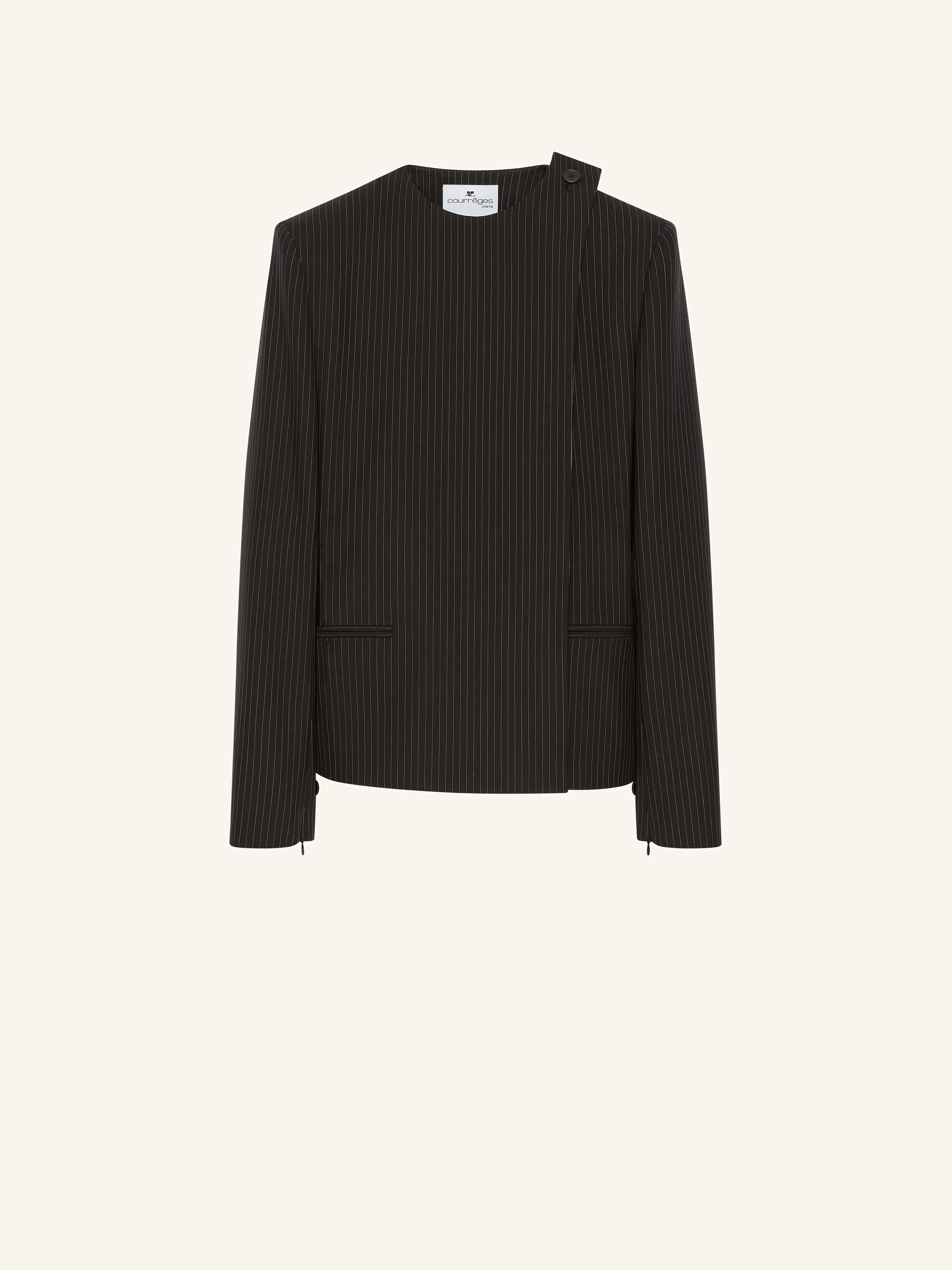 Fitted jacket with buttoned shoulder and two front welt pockets. Zipped sleeves and adjustable back belt. The model is 1.77m tall and wears a size 36. DETAILS Composition: 41% polyamide, 31% polyester, 25% wool, 3% other Country of Manufacture: SK SKU: 325CVE132PL02249901 Color: Black/Heritage White