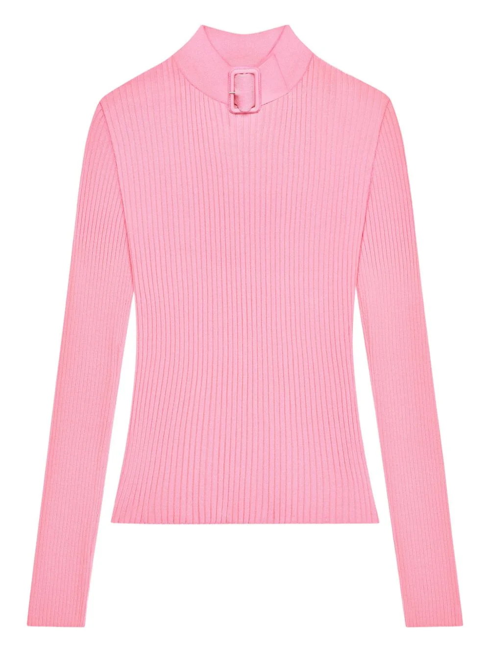 buckle ribbed-knit sweater Highlights - Pink - Ribbed-knit - Buckle detail - Long sleeves - Mock neck Imported Composition Viscose 70%, Polyester 30% Washing instructions Read Manufacturer Guidelines