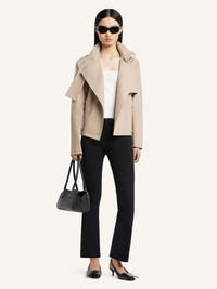 Short double breasted cotton trench coat with adjustable buckle at the collar. Back belt, zipped sleeves and two side pockets. The model is 1.77m and wears a size 36. DETAILS Composition: 100% cotton Country of Manufacture: SK SKU: 126CMA265CO01341005 Color: Beige