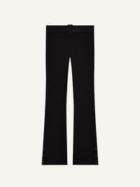 Rib-knit capri trousers with buckle detail at the waist. The model is 1.77m and wears a size S. DETAILS Composition: 70% viscose , 30% polyester Country of Manufacture: BG SKU: 126MPA677FI00019999 Color: Black