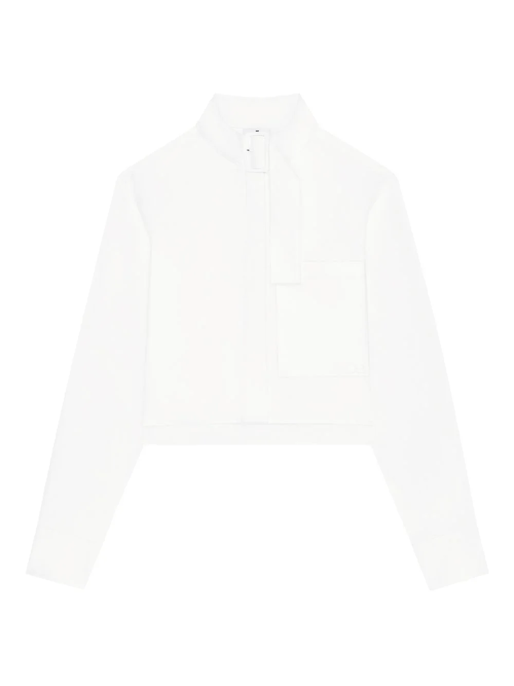 chest-pocket buckle-collar shirt Highlights - White - Buckle detail at collar - Chest pocket - Long sleeves - Cropped - Concealed front fastening Imported Composition Outer: Cotton 100% Washing instructions Read Manufacturer Guidelines