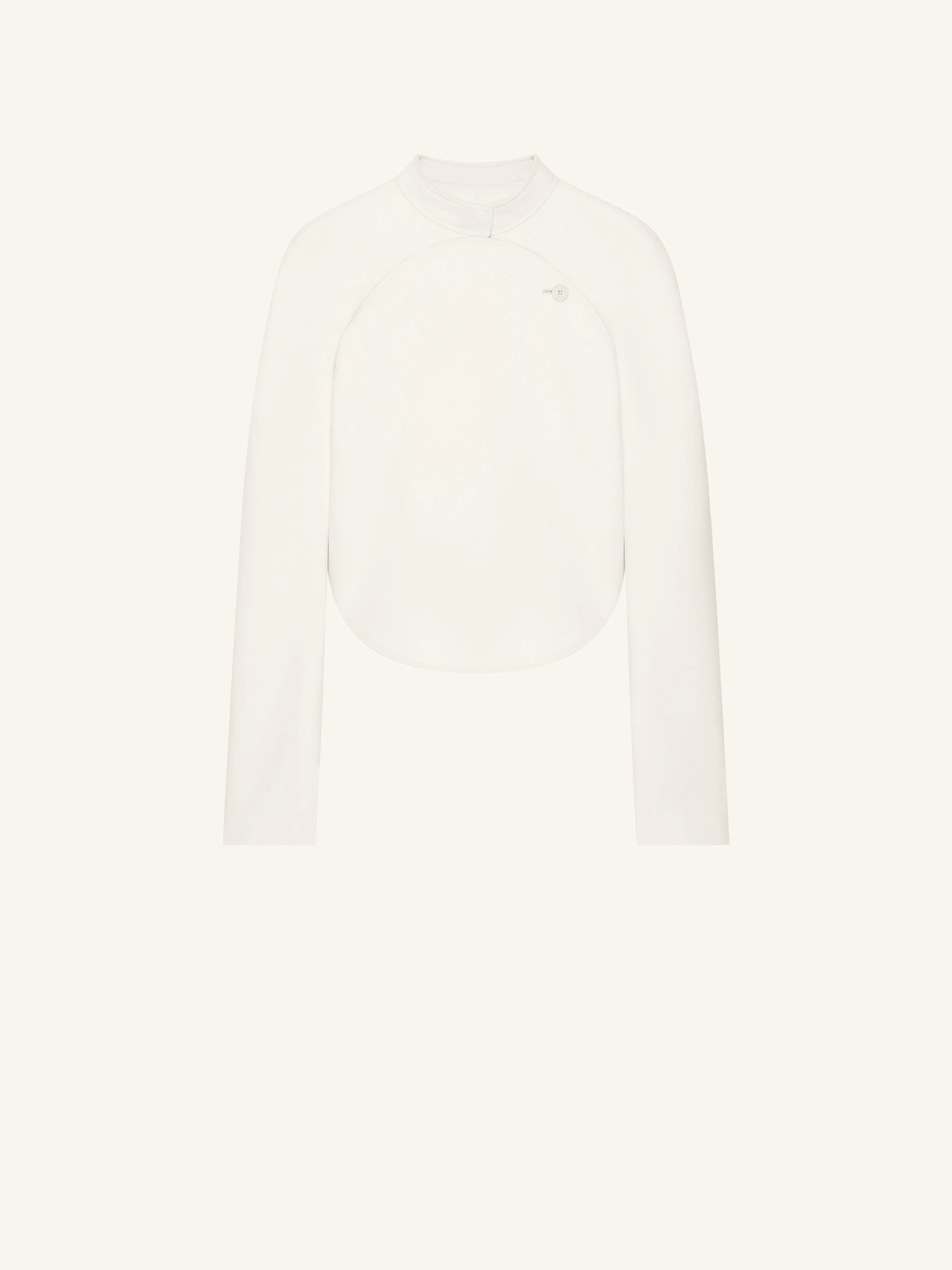 Fitted wool jacket with rounded bottom, buttoned collar and zipped sleeves. Crossed buttoning on the side. The model is 1.77m tall and wears a size 36. DETAILS Composition: 45% polyester, 36% wool, 16% polyamide, 3% lyocell Country of Manufacture: SK SKU: 325CVE122WO01430001 Color: Heritage White
