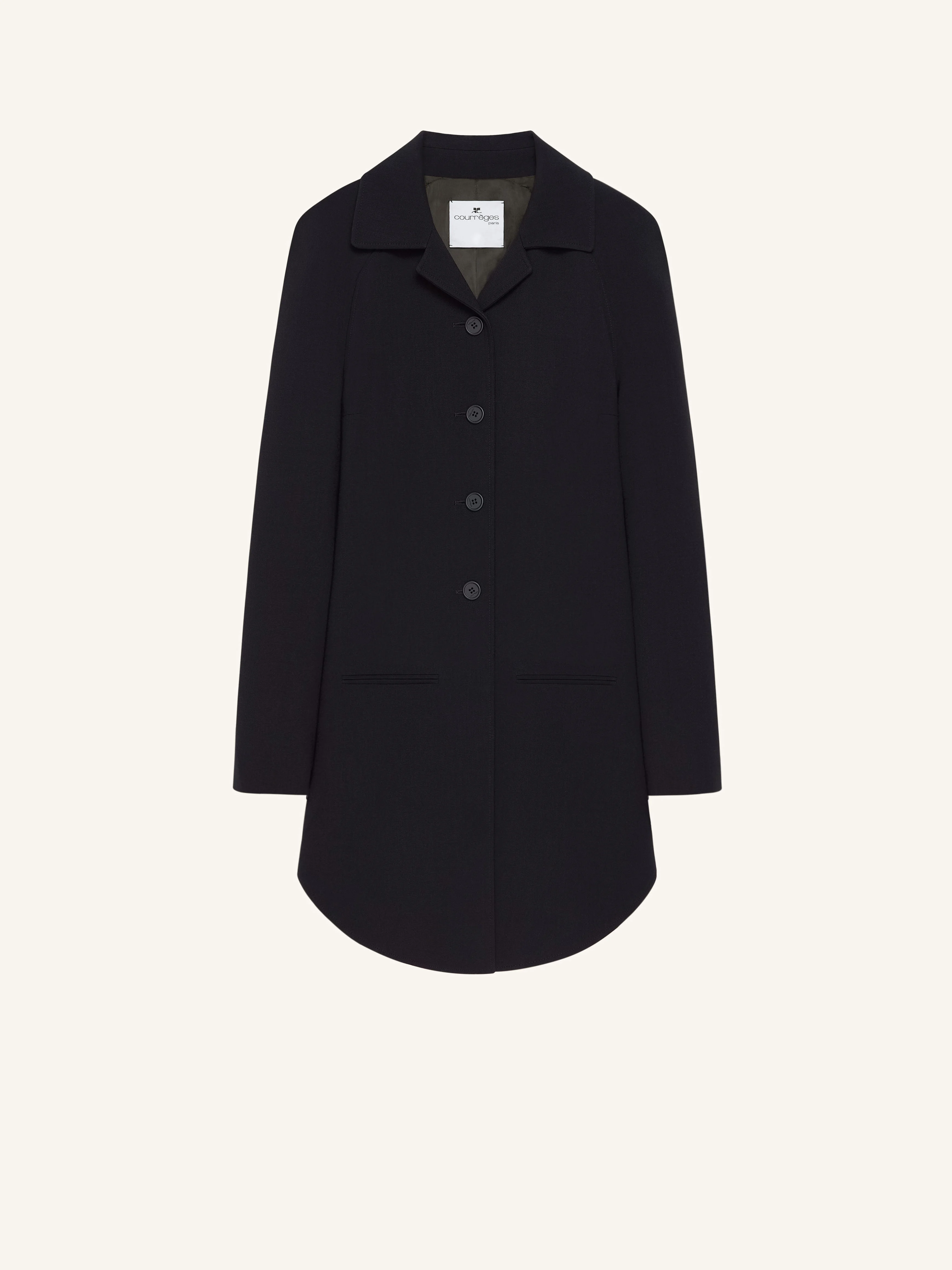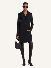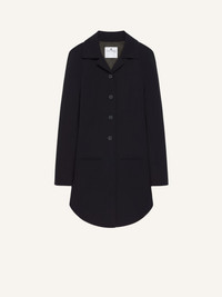 Short wool coat with rounded bottom, welt pockets and front button closure. The model is 1.77m tall and wears a size 36. DETAILS Composition: 45% polyester, 36% wool, 16% polyamide, 3% lyocell Country of Manufacture: SK SKU: 325CMA227WO01439999 Color: Black
