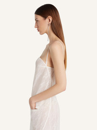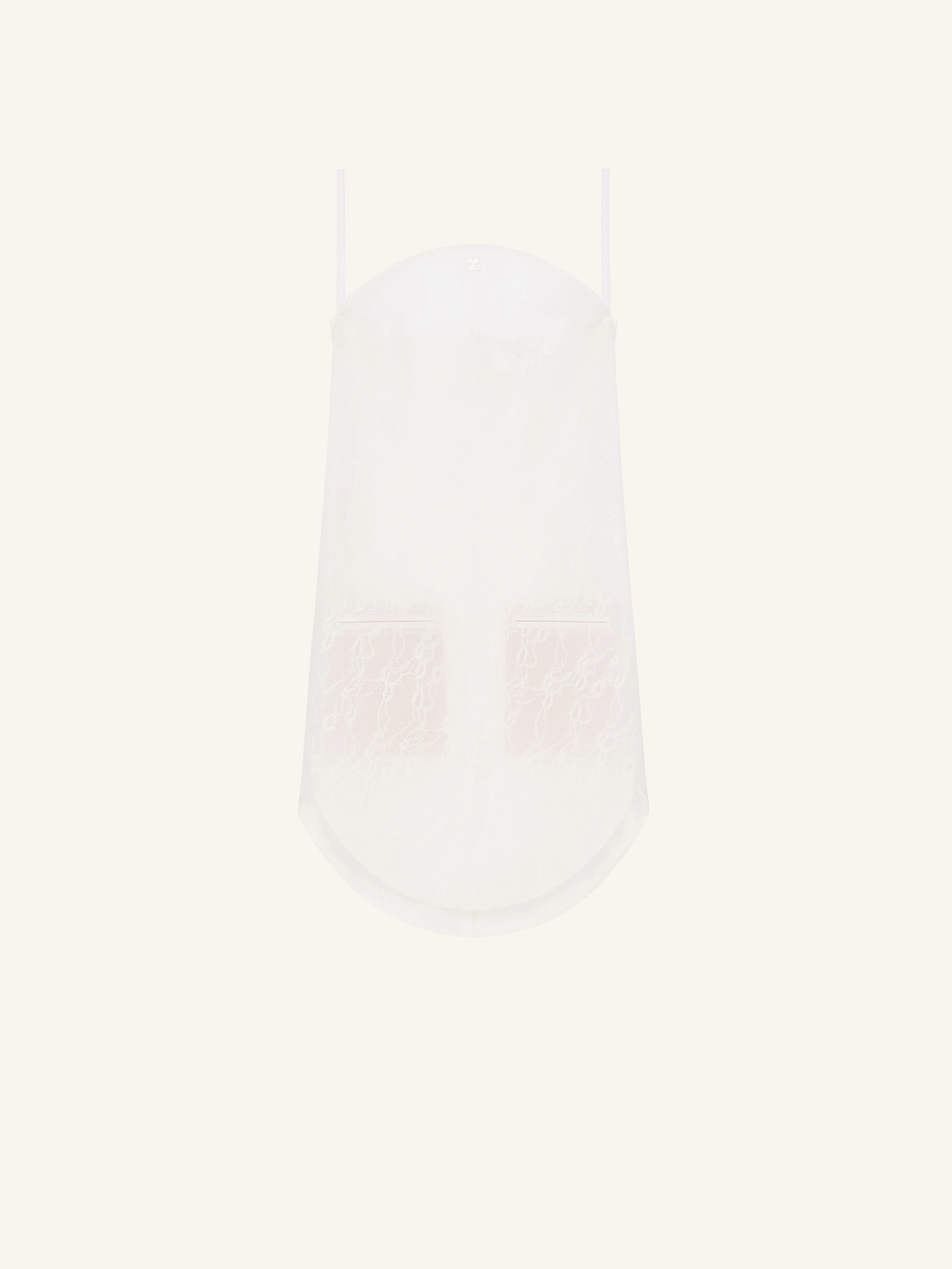 Short lace dress with thin straps and two front welt pockets. AC logo below circular neckline. The model is 1.77m tall and wears a size 36. DETAILS Composition: 54% polyamide, 32% polyester, 14% other Country of Manufacture: IT SKU: 325CRO684PA01350001 Color: Heritage White