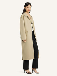 Cocoon coat with side pockets and small AC shadow logo on chest. Integrated back belt. The model is 1.80m tall and wears a size S. DETAILS Composition: 50% polyester, 50% cotton Country of Manufacture: LT SKU: 125CMA196PL01791005 Color: Beige