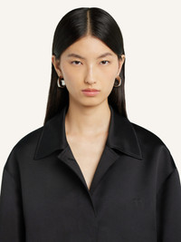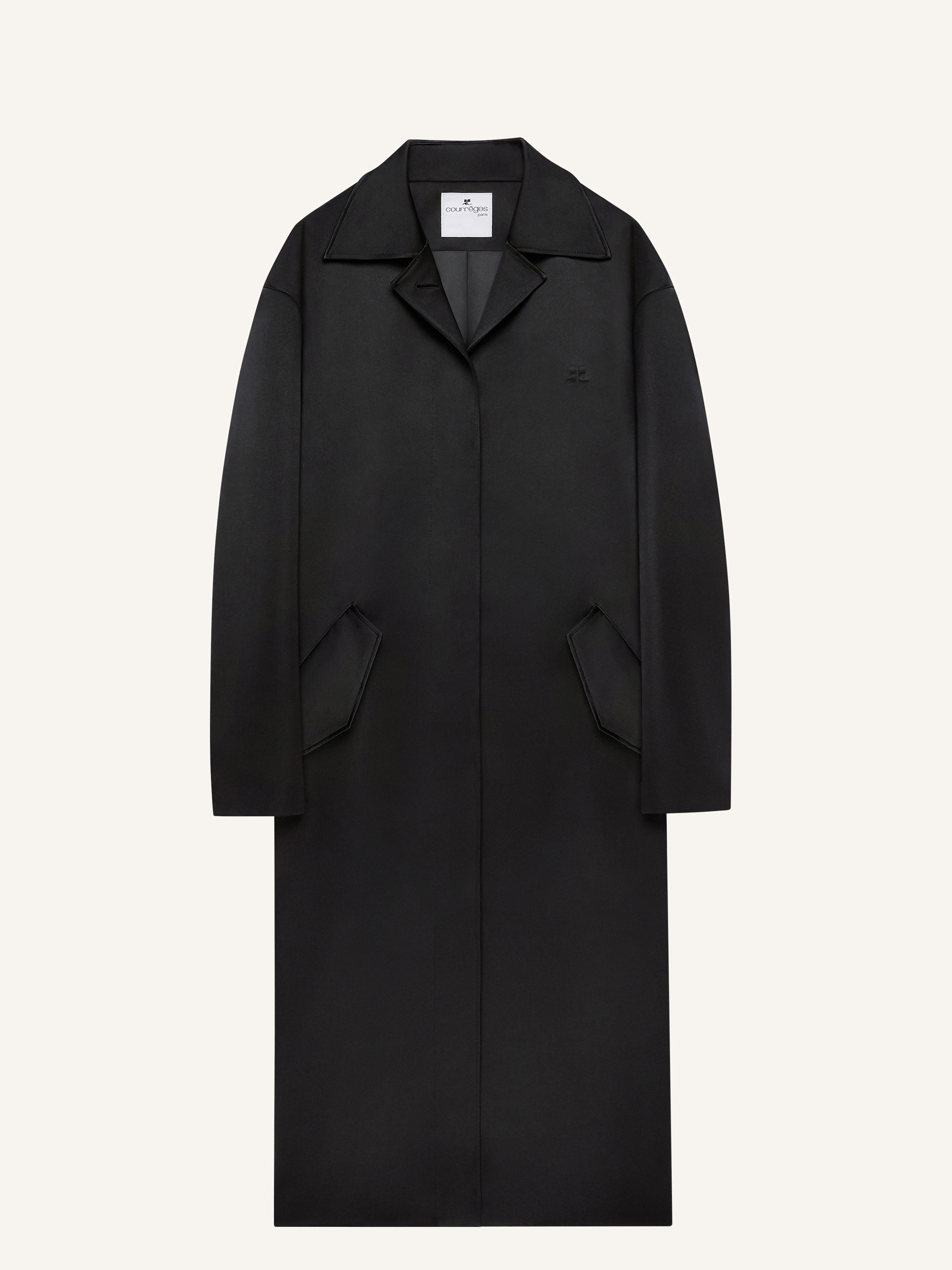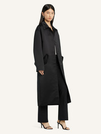 Cocoon satin coat with side pockets and small shadow AC logo on chest. Integrated back belt. The model is 1.80m tall and wears a size S. DETAILS Composition: 100% polyester Country of Manufacture: IT SKU: 125CMA200PL01629999 Color: Black