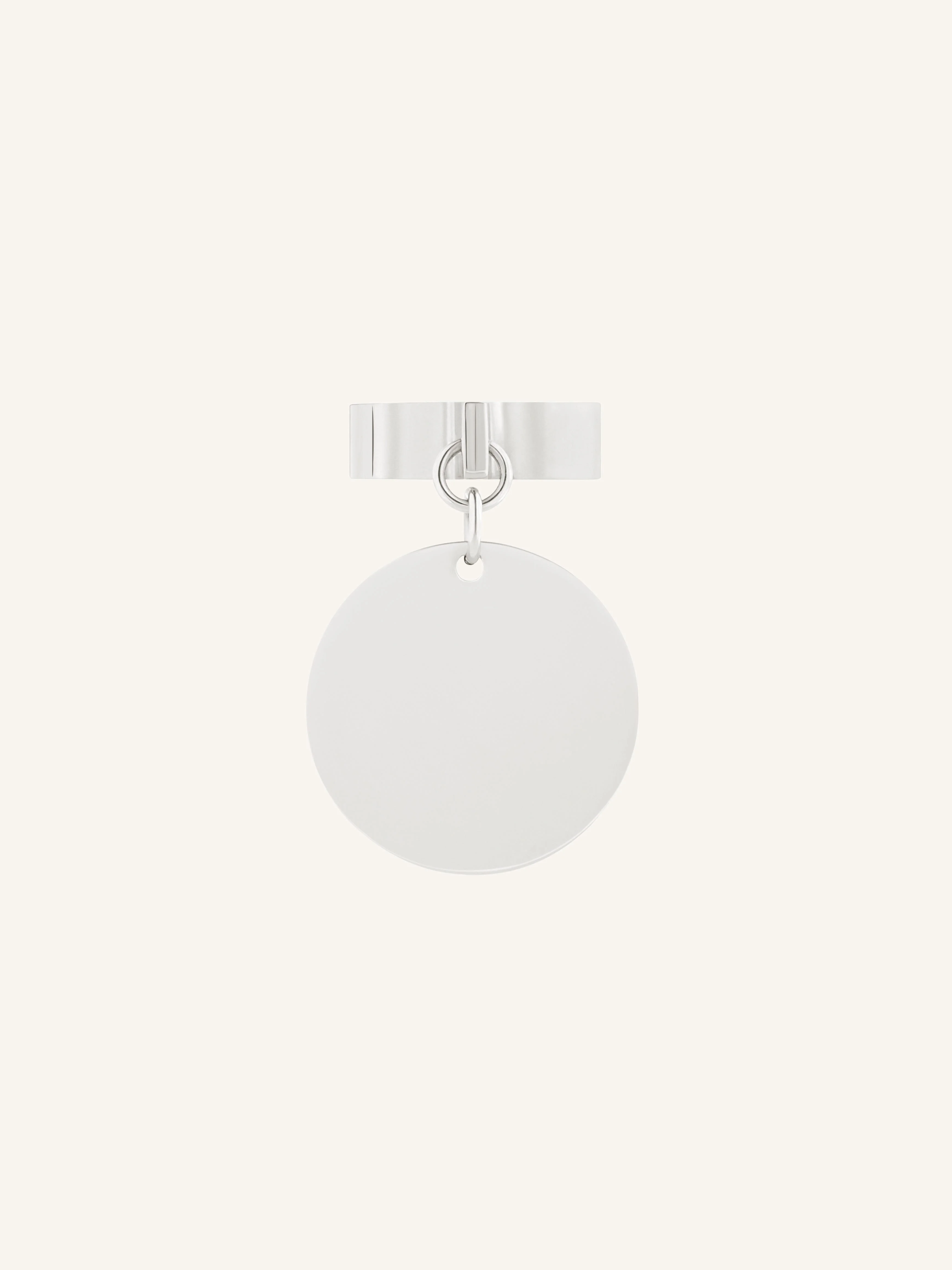 Silver-plated brass "Folded Confetti" ring with circular pendant. Engraved Courreges logo at the back. DETAILS Composition: 100% brass Country of Manufacture: IT SKU: 425BBG044LA00019000 Color: Silver