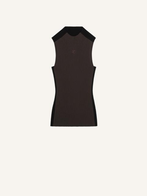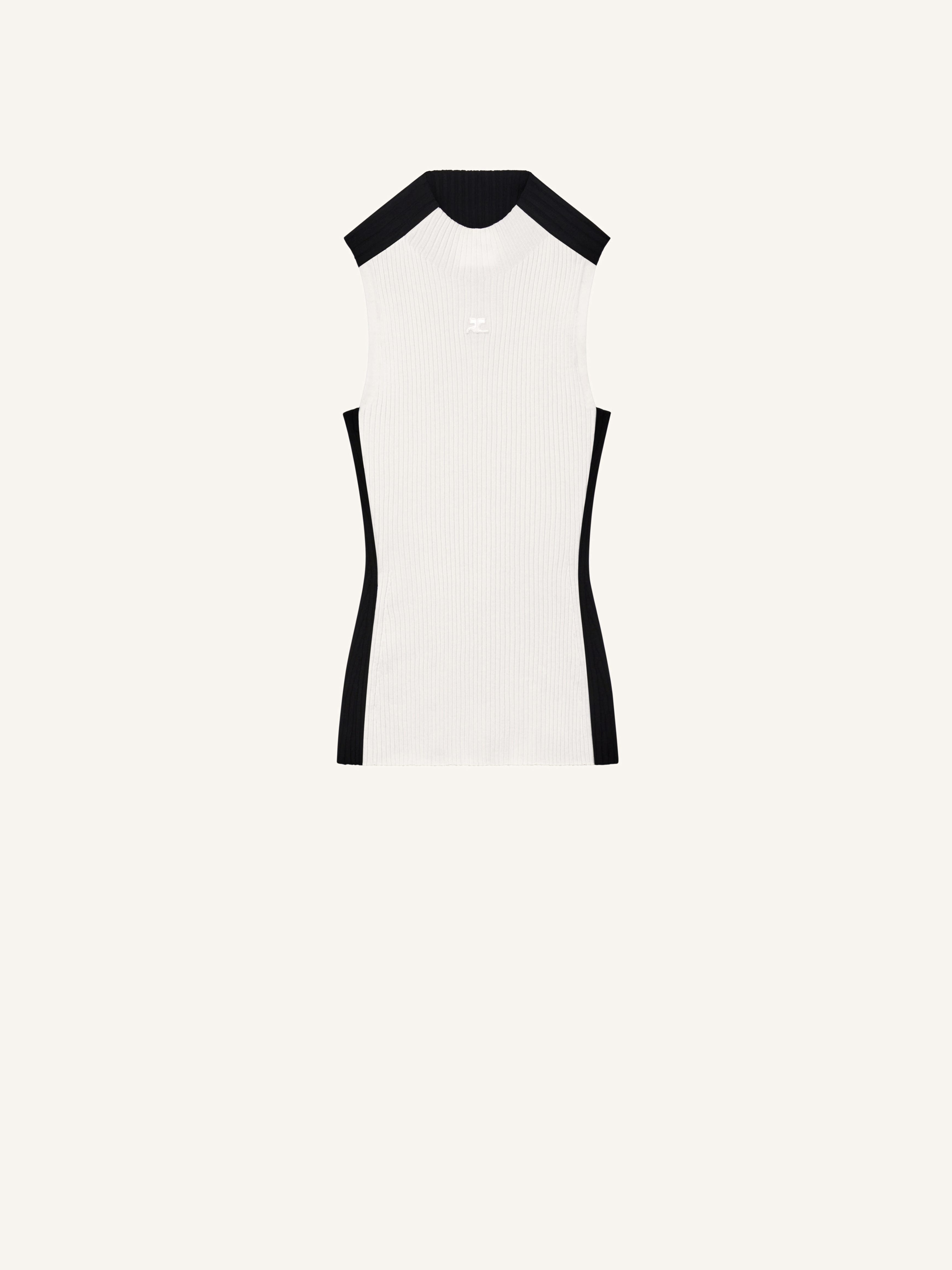Contrast frame sleeveless rib knit top. Stand-up collar and AC logo centered on the chest. The model is 1.78m tall and wears a size S. DETAILS Composition: 70% viscose, 30% polyester Country of Manufacture: BG SKU: 324MTO336FI00010999 Color: Blanc / Noir