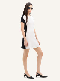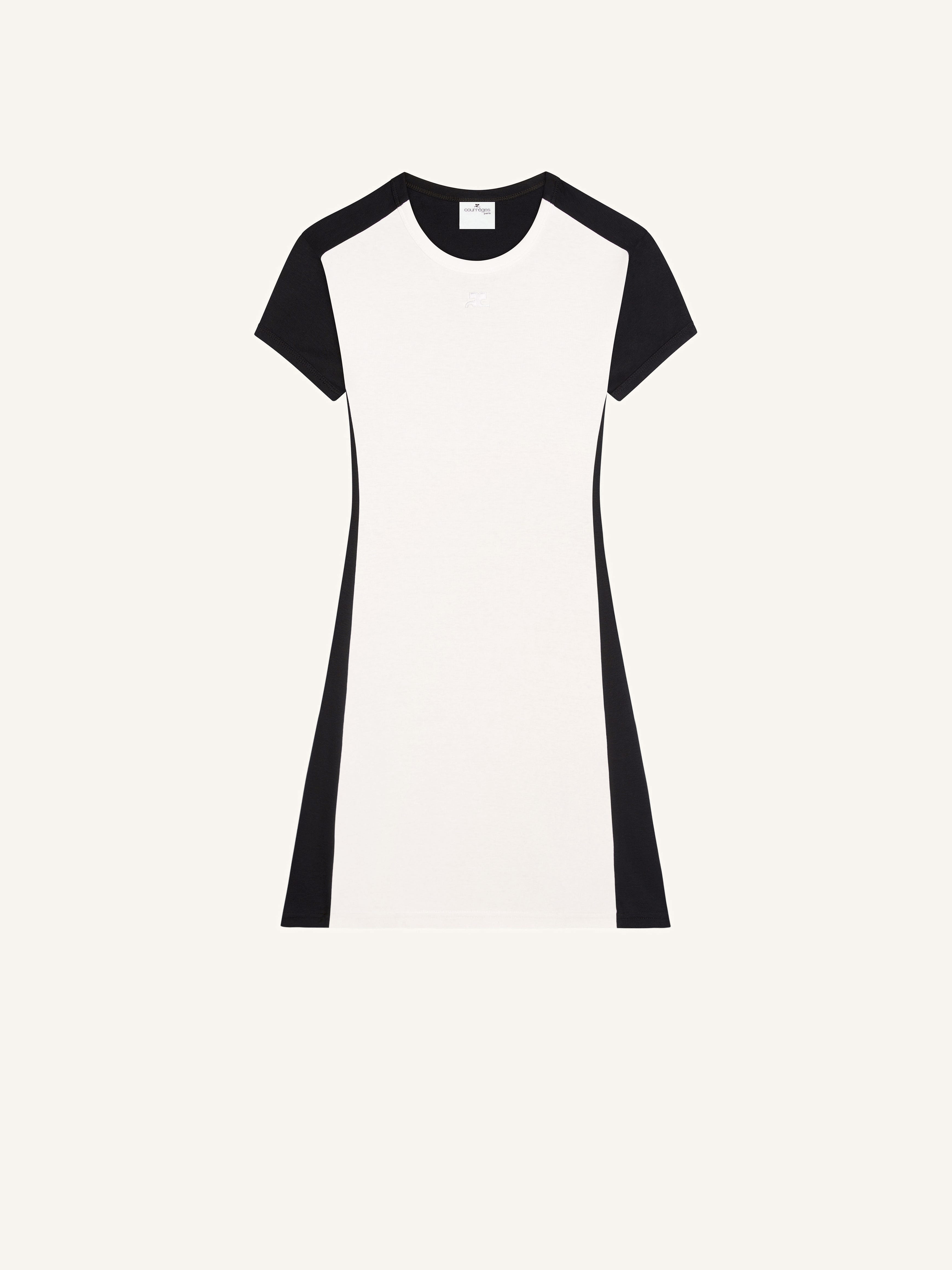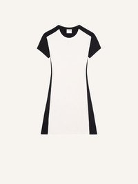 Cotton contrast frame trapeze mini dress with short sleeves and AC logo at neckline. The model is 1.75m tall and wears a size S. DETAILS Composition: 100% cotton Country of Manufacture: PT SKU: 324JRO448JS00700098 Color: Heritage White/Black