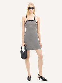 Sleeveless contrast mini dress. Square neckline with AC logo centered underneath. Houndstooth print. The model is 1.76m tall and wears a size S. DETAILS Composition: 100% cotton Country of Manufacture: PT SKU: 324JRO458JS0167B135 Color: Houndstooth White / Black