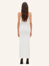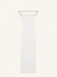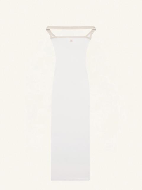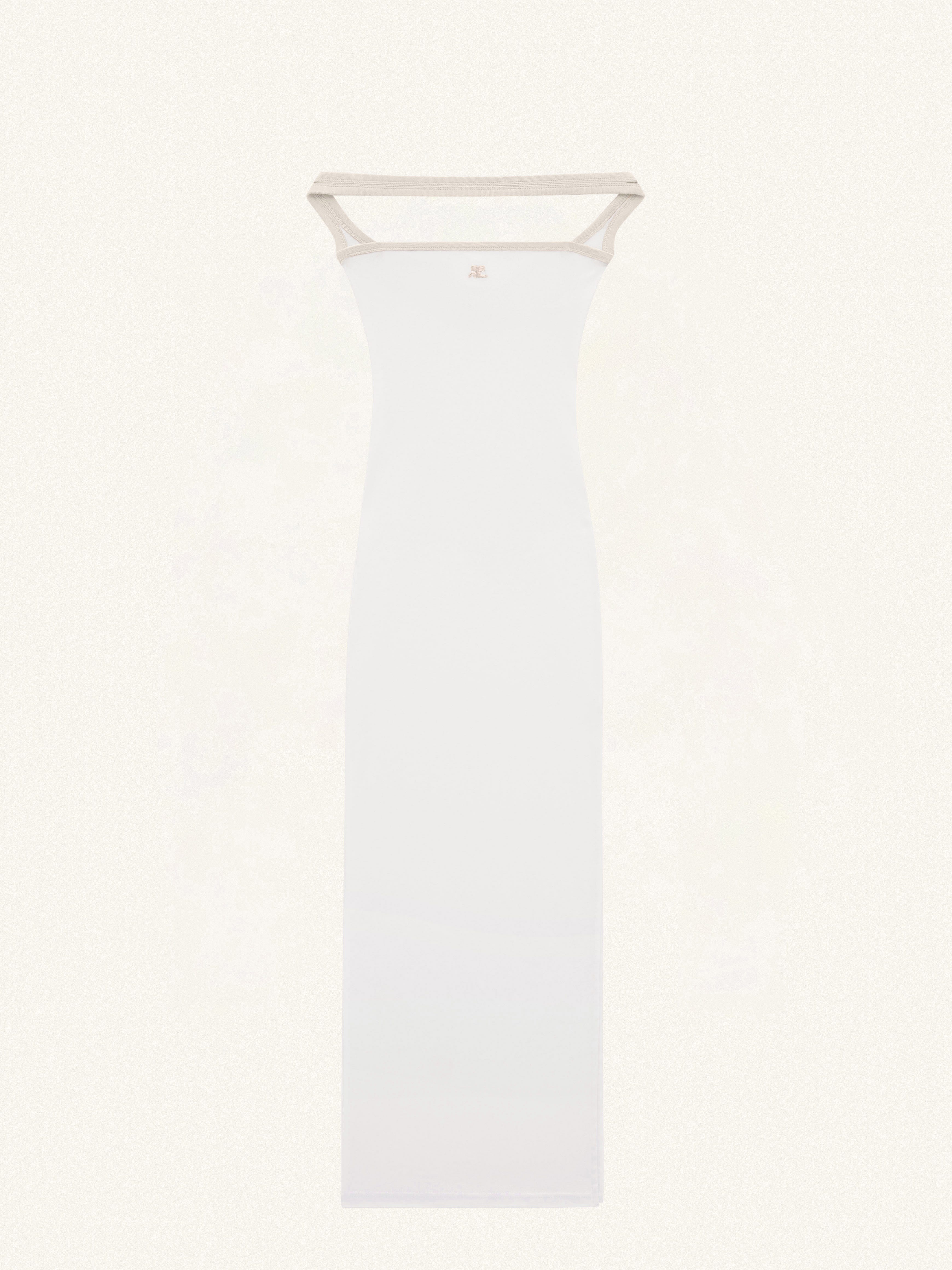 Hyperbole bustier long dress with side slit. Embroidered AC logo on front. Bias in contrast. The model is 1m75 tall and wears a S size. DETAILS Composition: 100% cotton Country of Manufacture: PT SKU: 224JRO400JS0070B131 Color: White Heritage / Sand