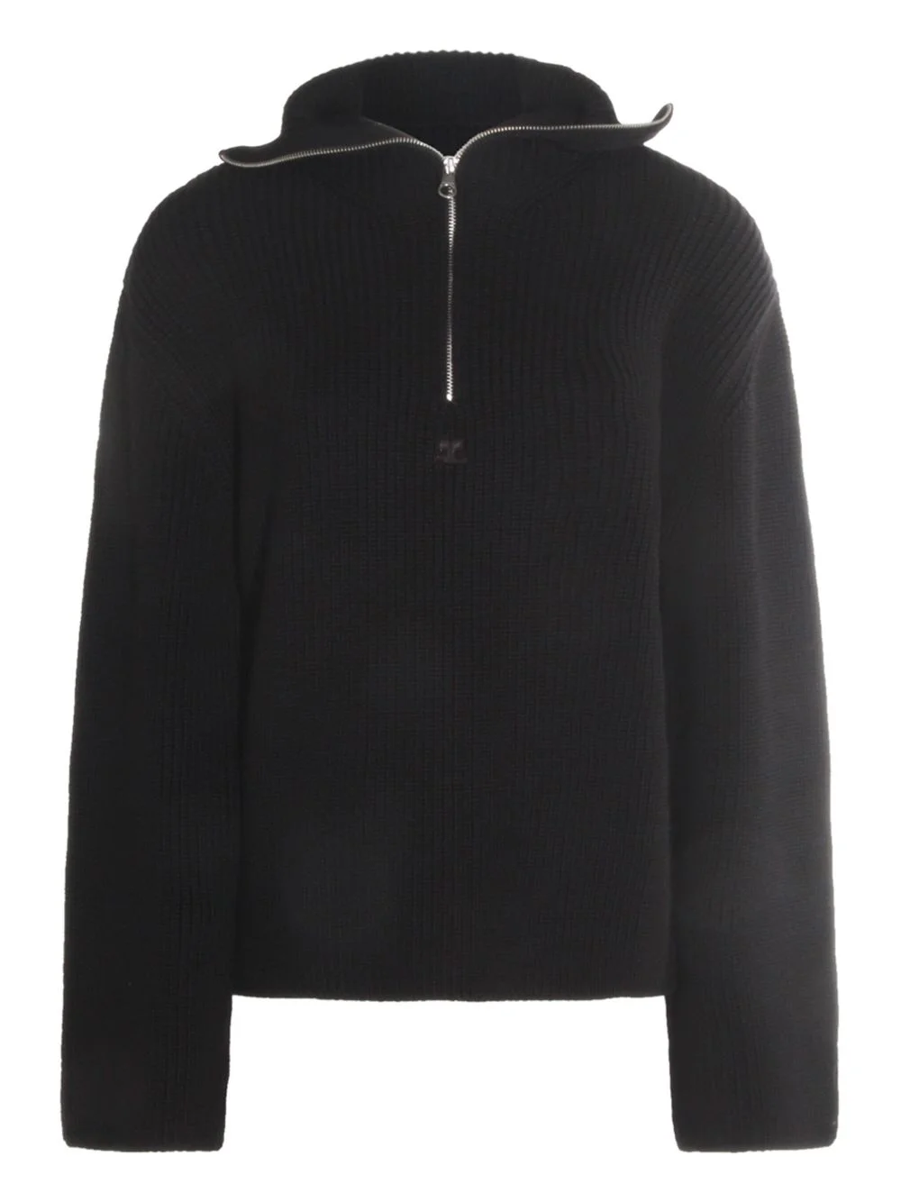 zip-neck ribbed sweater Highlights - Black - Ribbed knit - Half zip fastening Imported Composition Wool 100% Washing instructions Read Manufacturer Guidelines