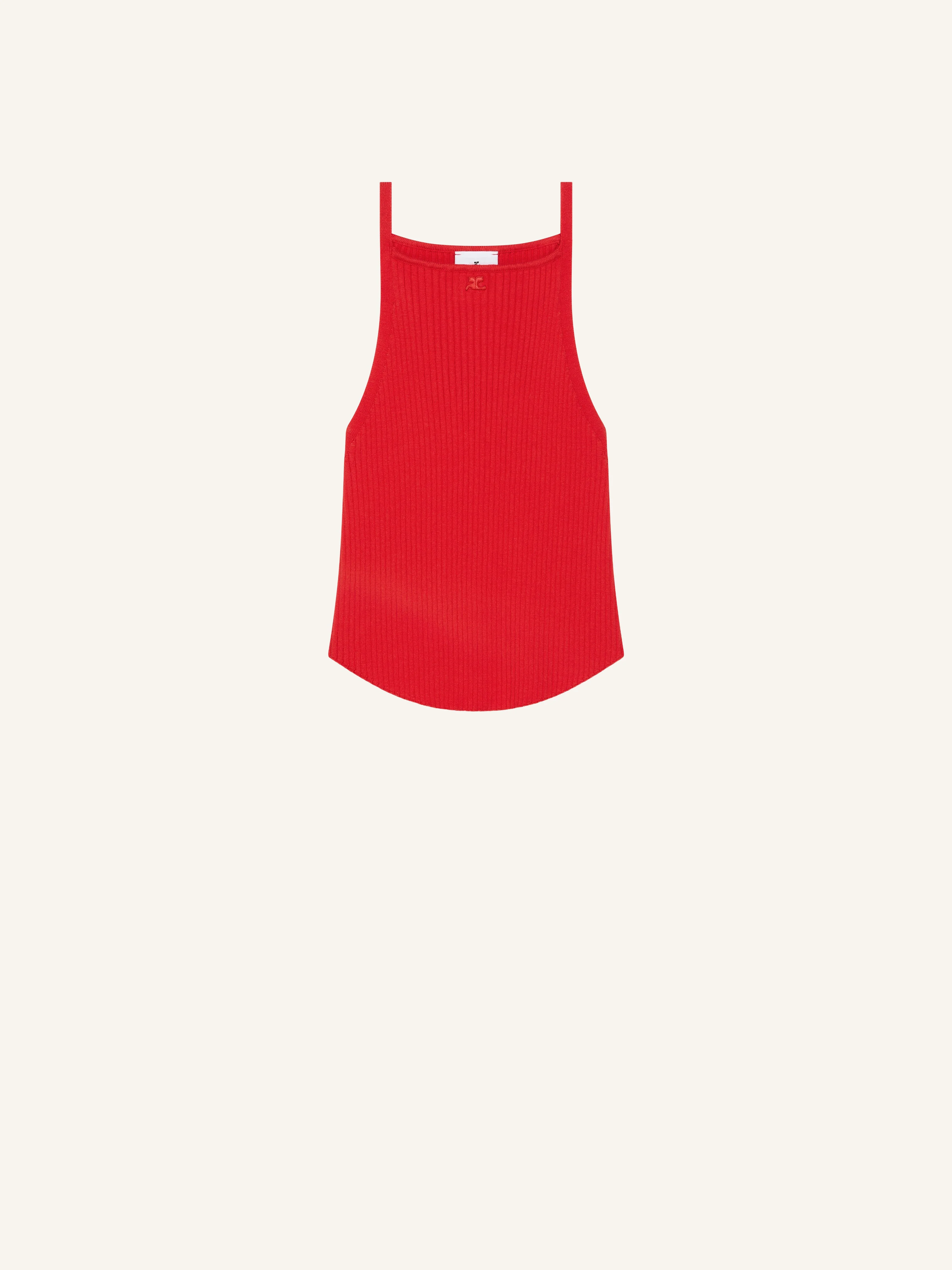 Rib-knit tank top with embroidered AC logo below the neckline. The model is 1.77m tall and wears a size S. DETAILS Composition: 70% viscose, 30% polyester Country of Manufacture: BG SKU: 325MTO450FI00014040 Color: Poppy