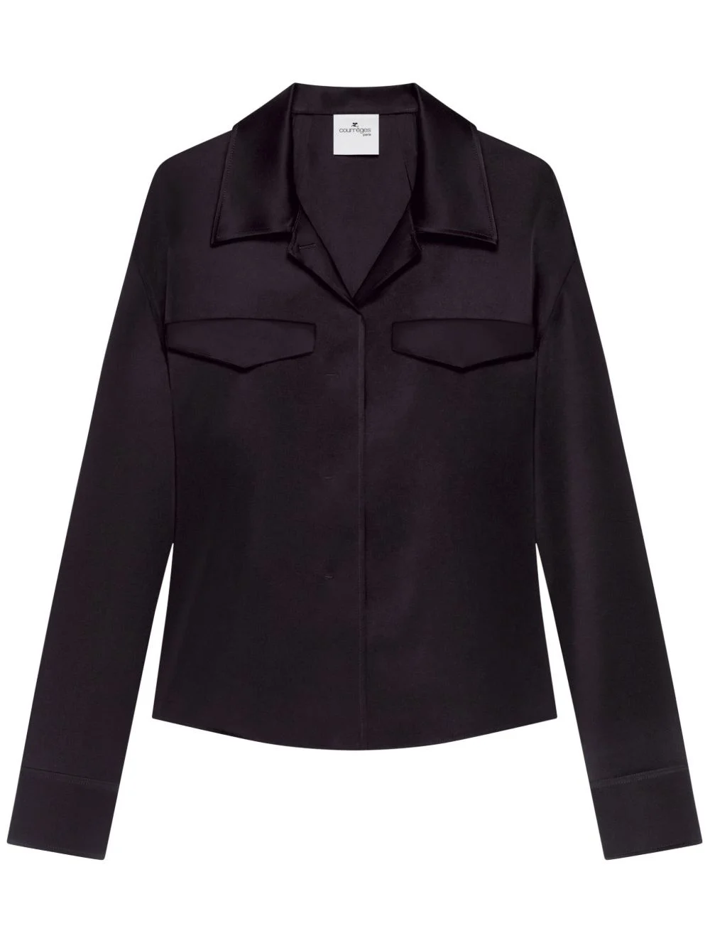 satin shirt Highlights - Black - Concealed front fastening - Two chest flap pockets - Buttoned cuffs - Notched collar Imported Composition Cotton 100%