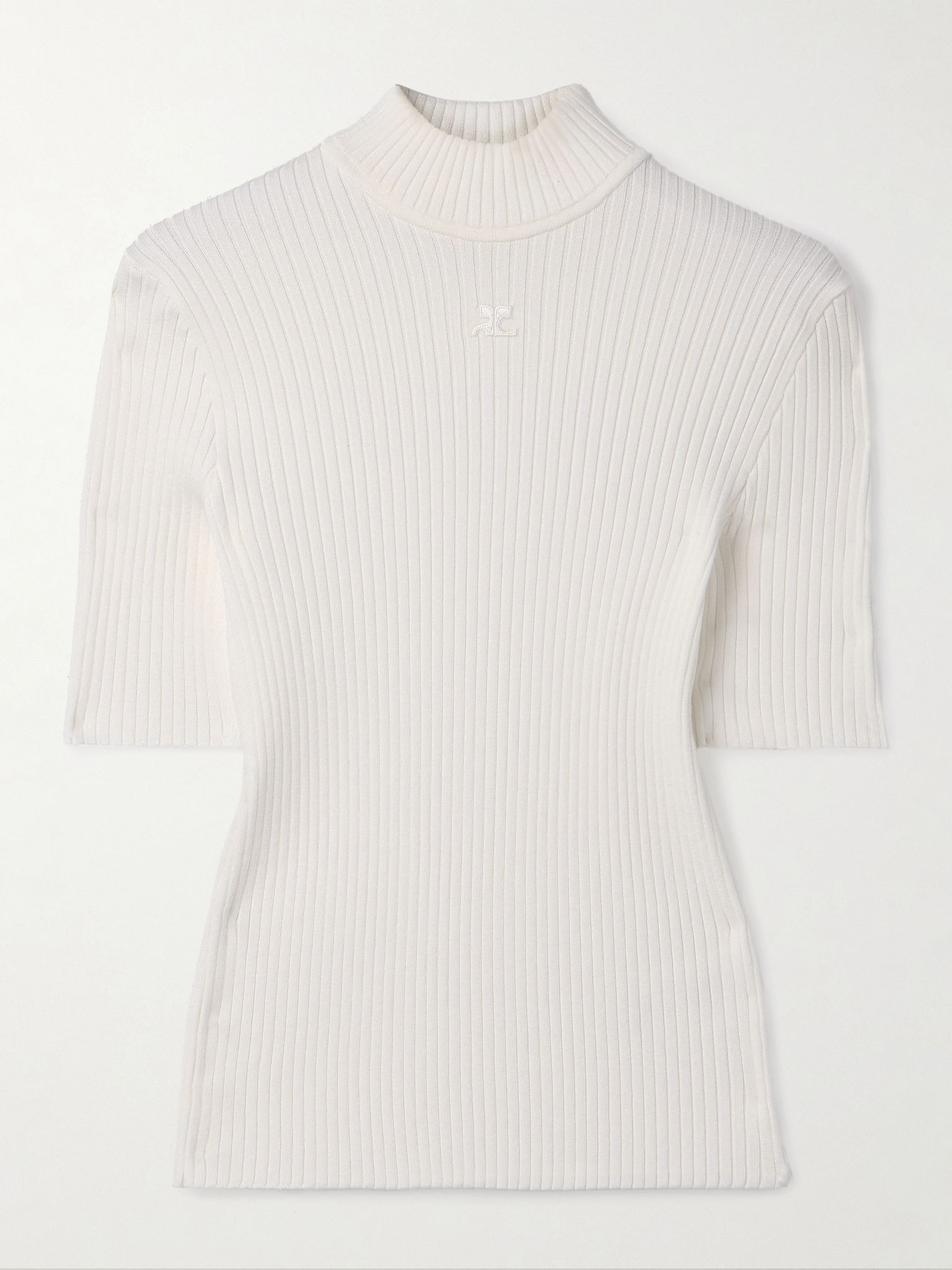 Courreges' ribbed-knit top is part of its 'Reedition' collection, which is inspired by some of the brand's most iconic styles from the '60s and '70s. It's designed for a slim fit and appliqued with the label's futuristic logo at the chest. Tuck yours into high-waisted jeans or a mini skirt. Size & Fit - Fits true to size, take your normal size - Designed for a slim fit - Mid-weight knit - Model is 180cm/ 5’11” and is wearing a size Small Details & Care - White ribbed-knit - Slips on - 70% viscose, 30% polyester - Hand wash