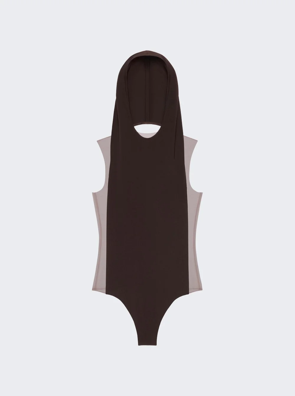 Frame Illusion Hooded Bodysuit Chocolate And Black