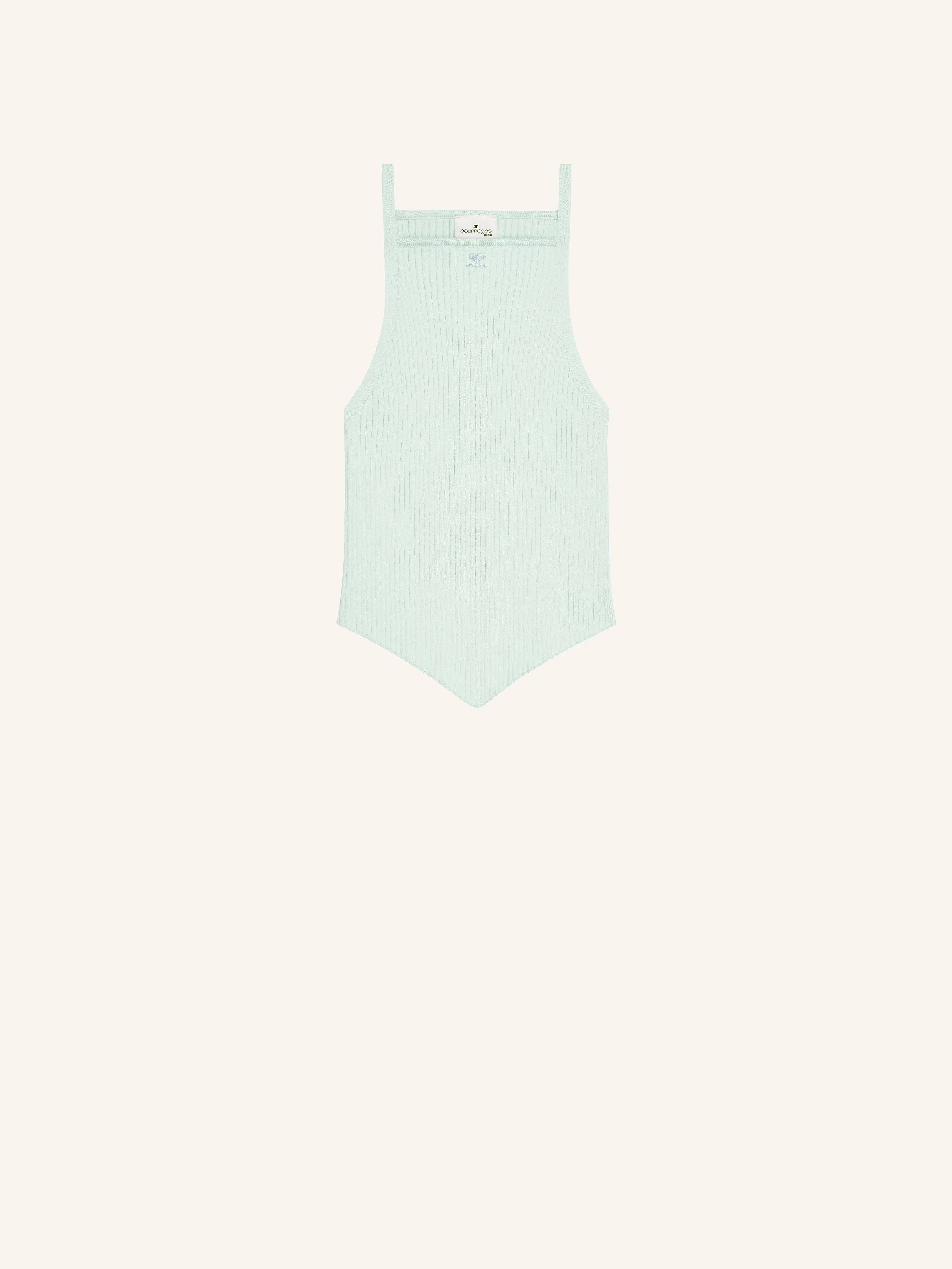 Rib knit tank top with pointed hem. AC logo below neckline. DETAILS Composition: 70% viscose , 30% polyester Country of Manufacture: BG SKU: 125MTO042FI00017038 Color: Light mint