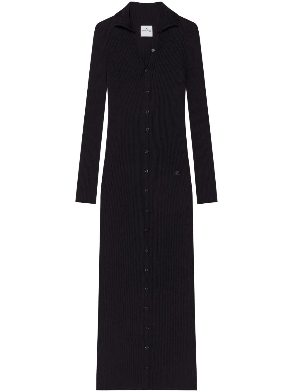 button-down midi dress Highlights - Black - Front button fastening - Long sleeves - Straight hem - Mid-length Made in Italy Composition Cotton 80%, Merino 20%