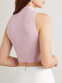EDITORS'NOTES Courreges' designs often pay tribute to the '60s, but with a modern slant. Rib-knitted from a cotton and merino wool-blend, this tank has a mock neckline, wide armholes and a cropped hem. The label's logo is appliqued at the chest. SIZE & FIT Model measurements: - Fits true to size, take your normal size - Designed for a slim fit - Mid-weight knit - Model is 177cm/ 5'10" and is wearing a size Small - Bust: 85cm/ 33” - Waist: 66cm/ 26” - Hip: 92cm/ 36” DETAILS & CARE - Baby-pink cotton and merino wool-blend - Slips on - 80% cotton, 20% merino wool - Hand wash or dry clean - Designer color: Salt Pink