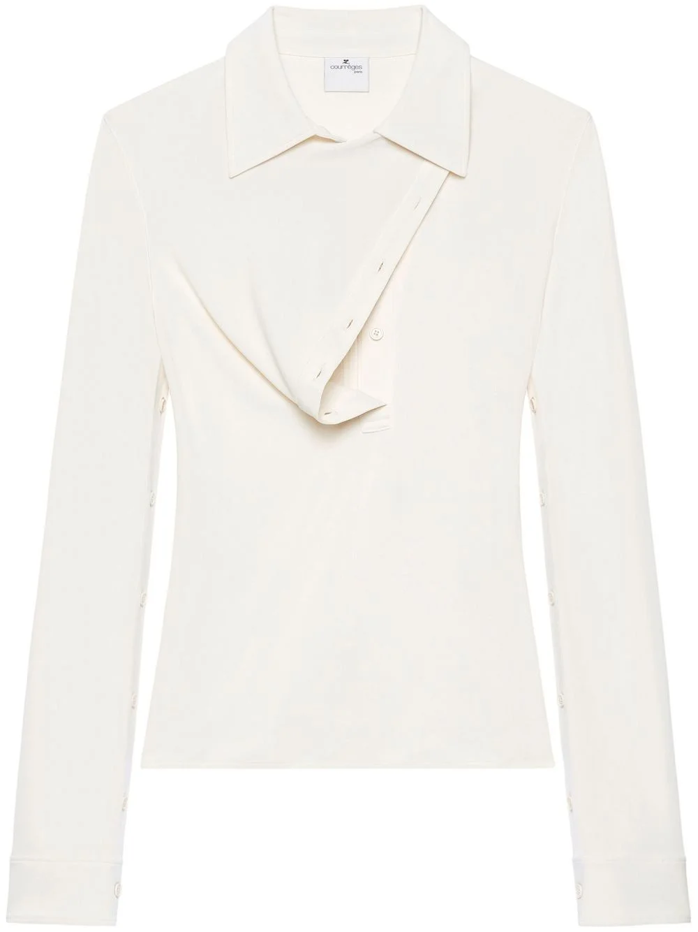 Oblique top Highlights - White - Short front button fastening - Classic collar - Long sleeves - Straight hem Imported Composition Viscose 95%, Elastane 5%