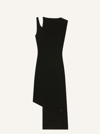 Asymmetrical mid-length ribbed dress with shoulder cut-out and embroidered AC logo on bottom. The model is 1.77m tall and wears a size S. DETAILS Composition: 70% viscose, 30% polyester Country of Manufacture: BG SKU: 425MRO720FI00019999 Color: Black