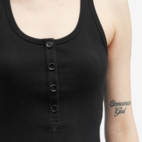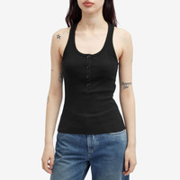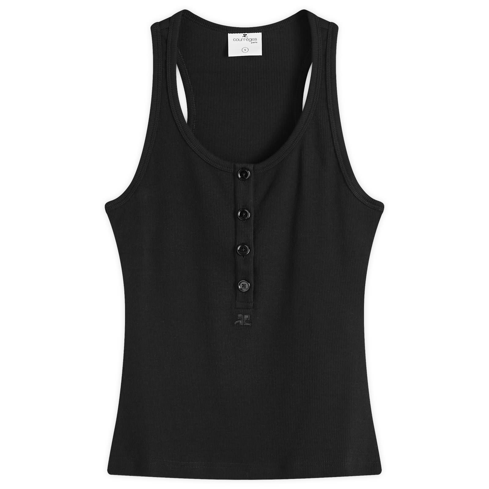 Showcasing effortless, everyday luxury, Courreges redefines modern design. This sleek, simple tank top is cut from soft, premium cotton, inspired by iconic ‘90s style, featuring a fine ribbed texture, half button placket and tonal embroidered signature logo detail at the front. The ideal versatile staple to elevate your casual wear. - 97% Cotton, 3% Elastane - Regular Fit - Half Button Placket - Fine Ribbed Texture - Scoop Neck - Embroidered Branding
