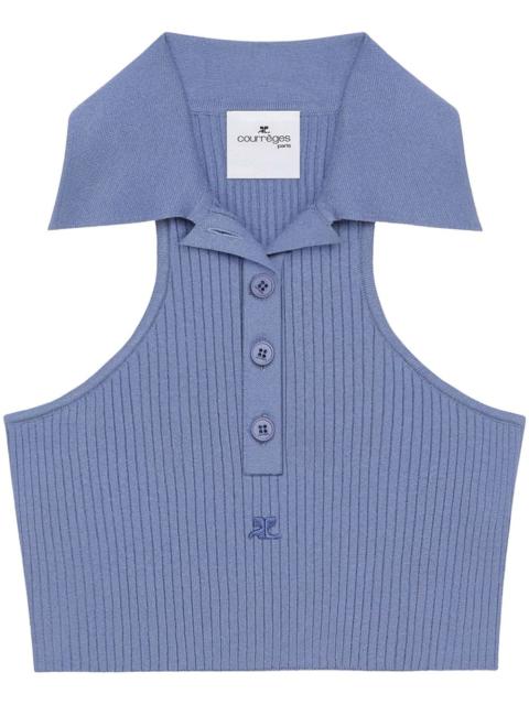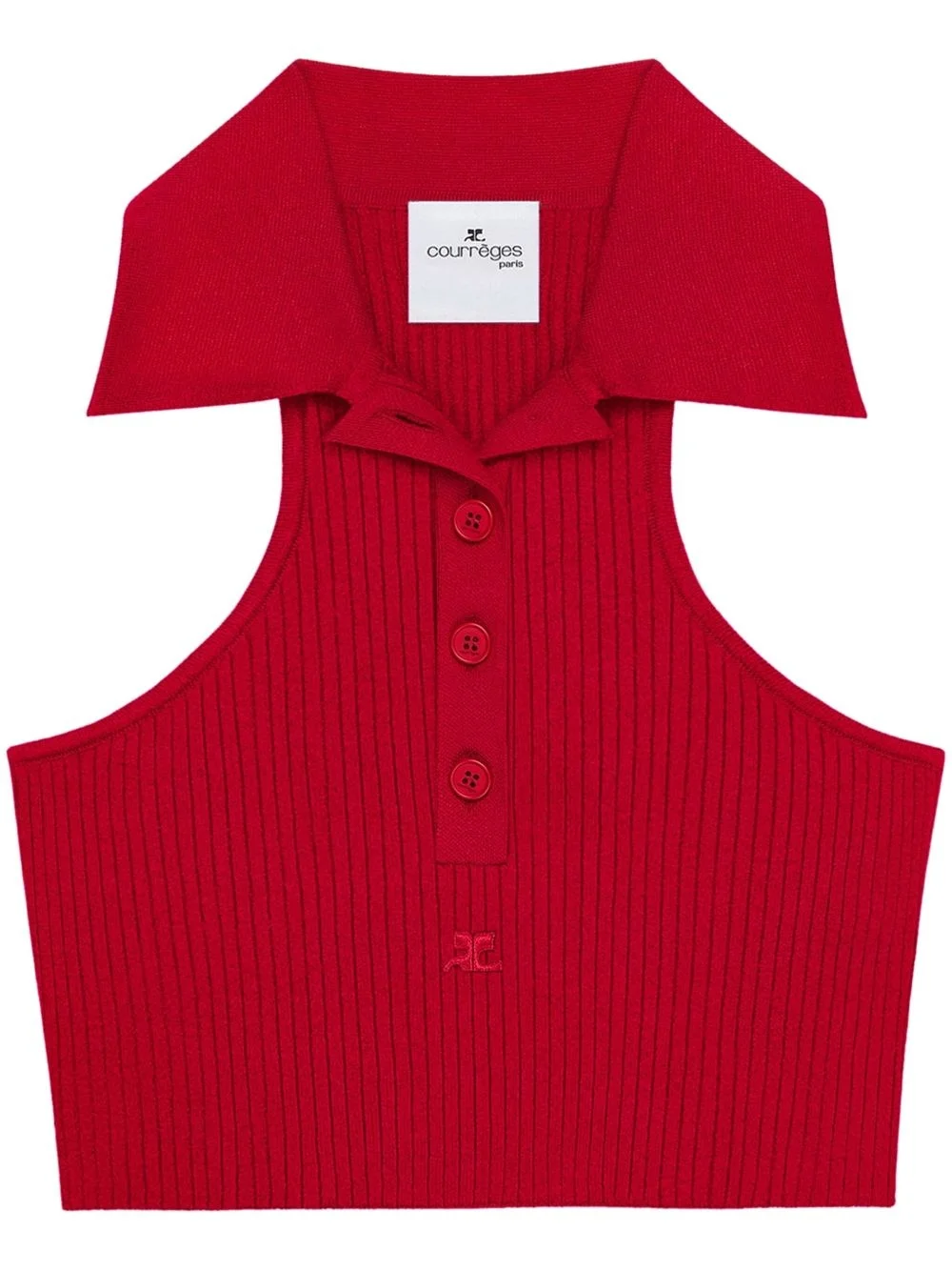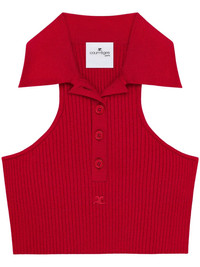 scuba-knit tank top Highlights - Ruby red - Front button placket - Camp collar - Sleeveless - Cropped Imported Composition Viscose 70%, Polyester 30%