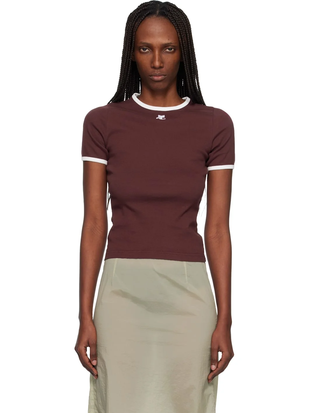 Cotton jersey T-shirt. · Rib-knit crewneck and cuffs · Logo embroidered at chest Supplier color: Burgundy/Heritage white 100% cotton. Made in Portugal 252783F110005